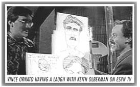 “Vince Ornato was our guest artist and did an outstanding job in a live television situation, drawing various guests on the spot! I highly recommend him for any event looking to utilize a talented artist.” -- Mark Gross, Producer of “Sportnight” ESPN2 |